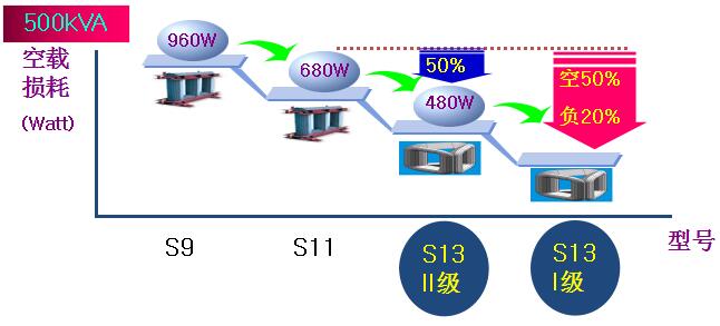 單臺預(yù)計節(jié)能效果 (500kVA) S13I級與S11國標比較